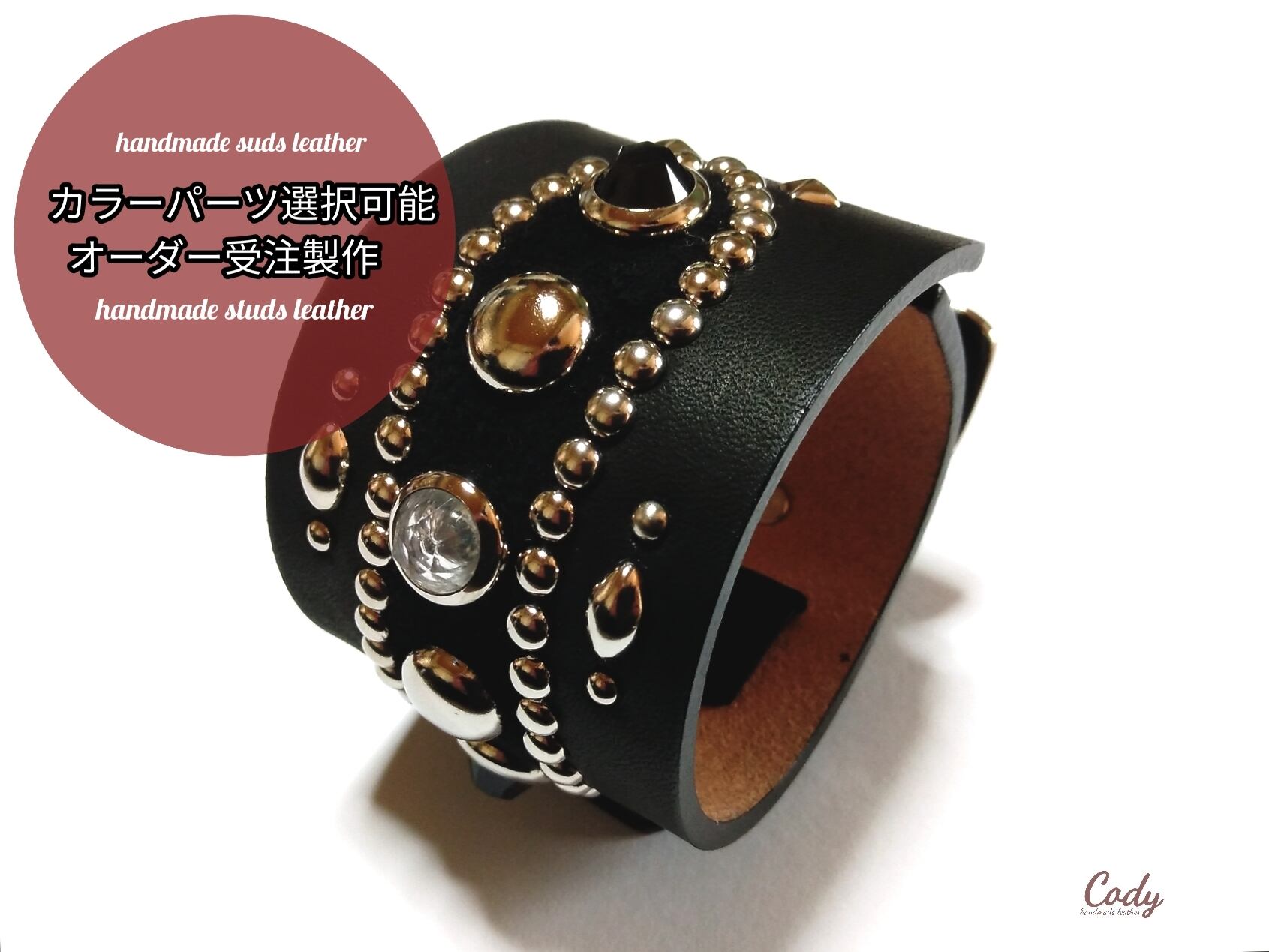 カラーパーツ選択受注製作■50mm スタッズリストバンド【CSW-50M-001】